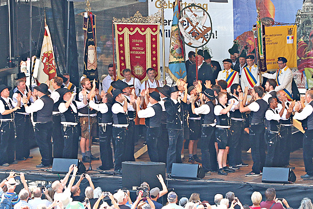 Ihr 90-jähriges Bestehen feierte die ZI München auf dem Stadtgründungsfest 2018. Für die Aufführung des Zimmererklatsches waren Zimmerer aus ganz Bayern in Kluft gekommen.