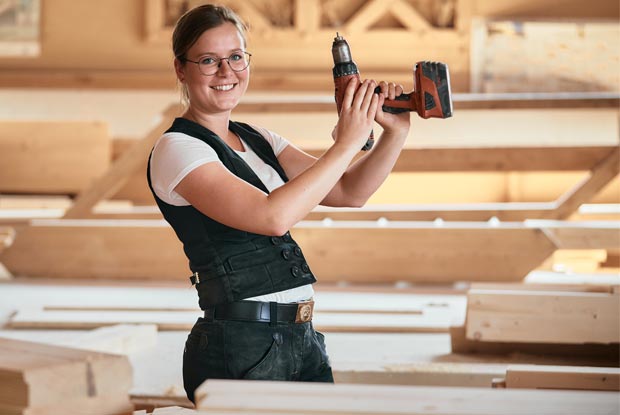 Der Akkuschrauber ist das Lieblingswerkzeug der Zimmermeisterin.